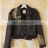 Women's Faux Leather Zip Closure Long Sleeve Bolero Imitation Leather Jacket BomerJacket Blazer Cycle Jacket With Embroidery