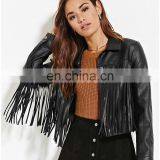 Women's Spring Faux Leather Bolero Imitation Leather Jacket Bomer Jacket Blazer With Tassel Details