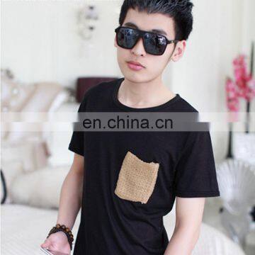 2017Peijiaxin Fashion Design Casual Style Plain Woolen Custom Collar Pocket Men Tshirt Pattern