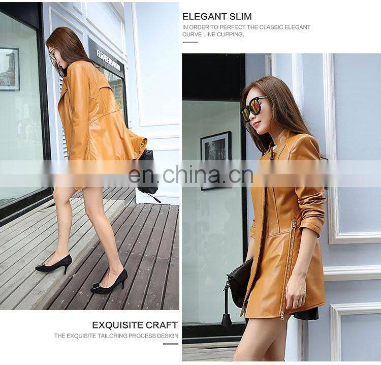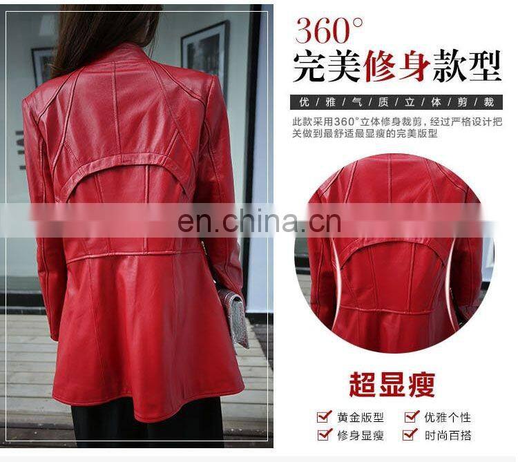 Haining Genuine Sheepskin Girls Leather Jacket Women Long Coat