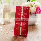 Unique 062 Red Laser Cut Decoration Wedding Invitation Card With Ribbon
