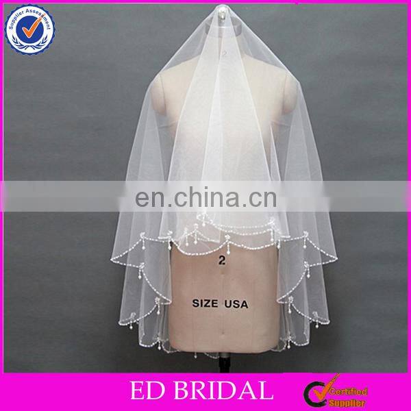 A17 2016 Wholesale New Instock item high quality soft tulle short bridal veil beaded trim