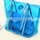 2 in 1 Fashion Transparent Beach Bag Tote Shoulder Clear Bag PVC