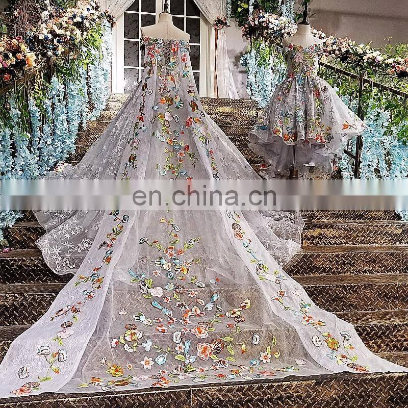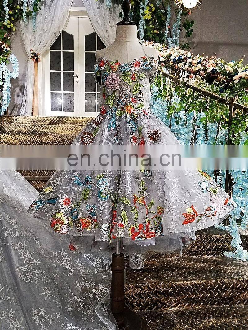 LS00147 Best Selling off Shoulder Lace Applique Luxury Baby Laced Flower Girls Dresses