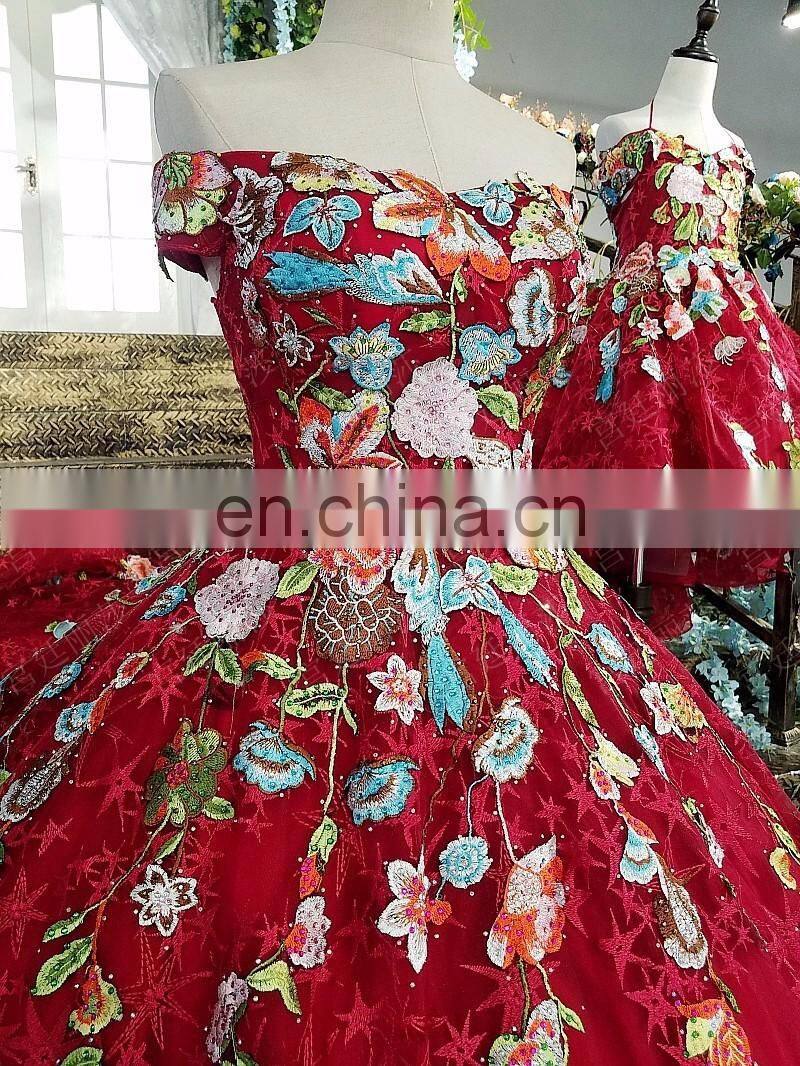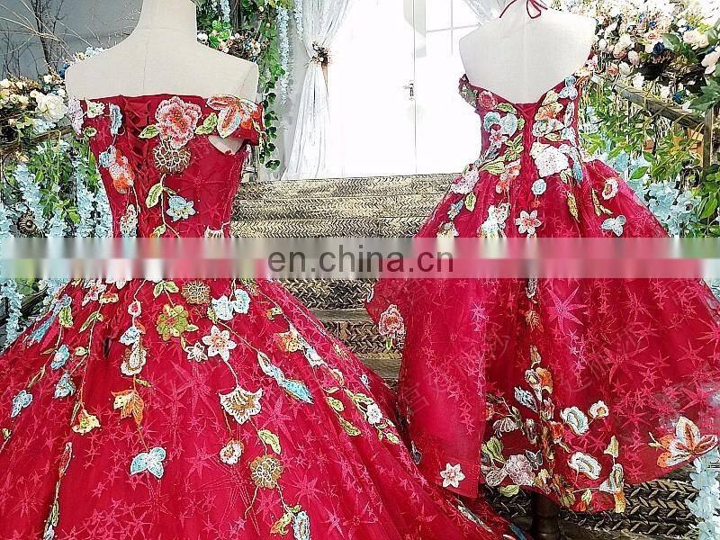 A17DL0008 Decorative Crochet Handmade Flowers Girls Beauty Set Corset Back Latest Evening Gowns