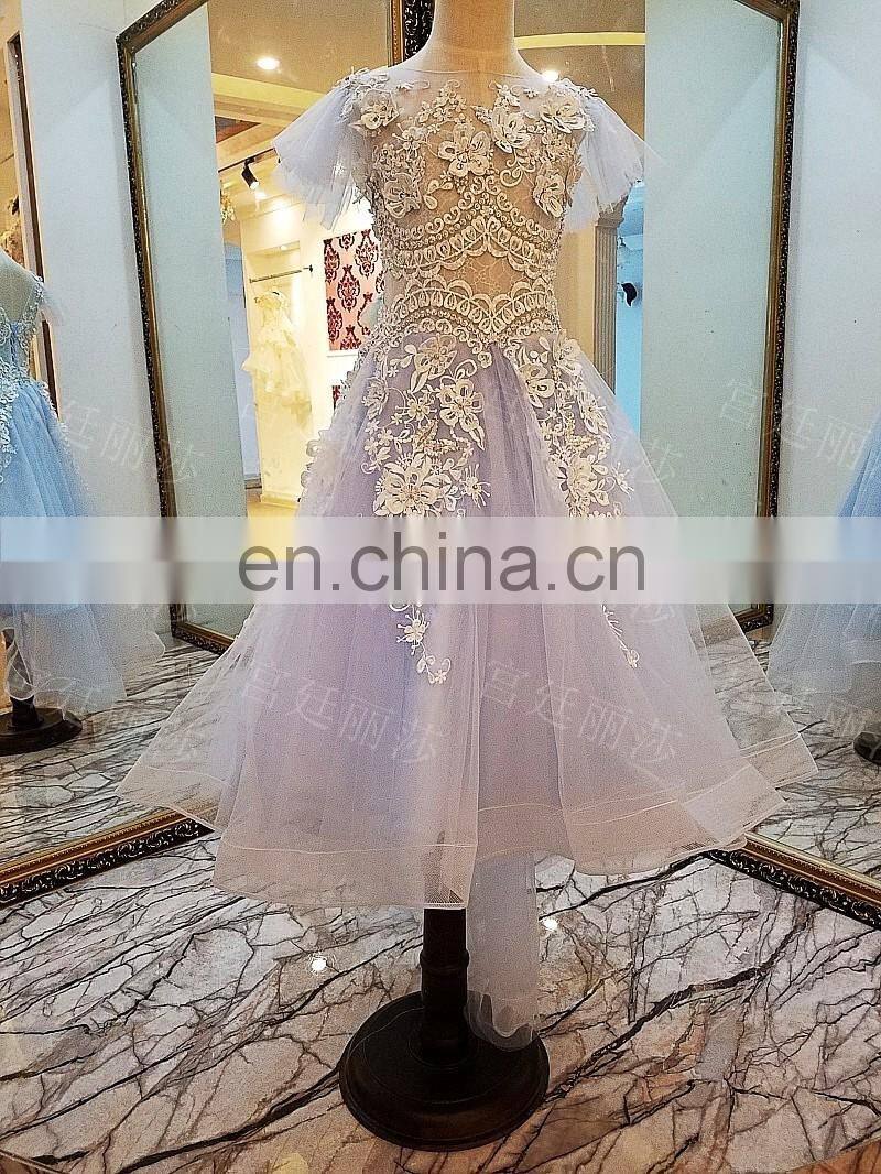 LS00155 2017 baby chinese girl party dress children short front long back real sample evening dress