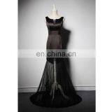 LSQ052 0-neck Tank Natural Waist With Bead Appliques Lace Tulle Black Long Mermaid Dress