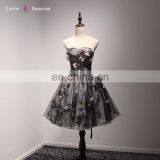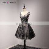 A17DL0033 3d Flower v Neck Women Black Prom Evening Dresses Beaded Short Prom Gown Dress