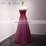 A17EL0004 Strapless Crystal Cheap Long Prom Dresses Mesh Side Bead Design Evening Dress