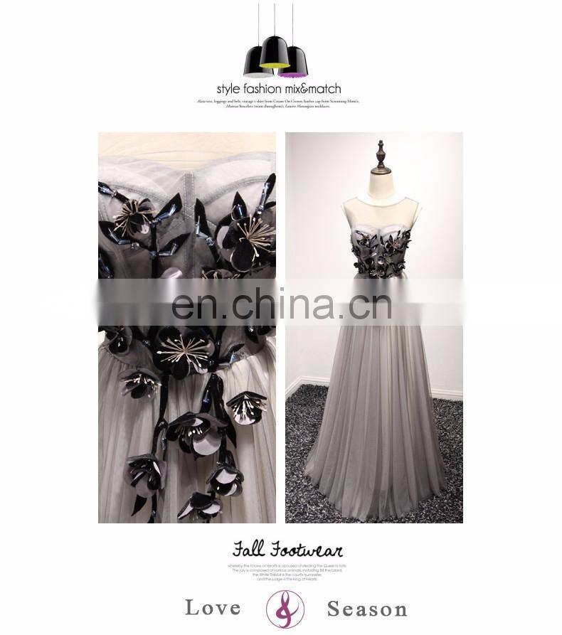 A17BL0008 O-neck Sleeveless Black Bead Gray Dresses Party Night Long Burgundy Long Gown