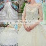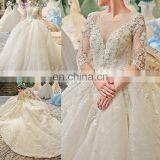 LS00391 Beaded Wedding Gown With 3/4 Length Sleeves White Long Gown Cathedral Train Wedding Dress