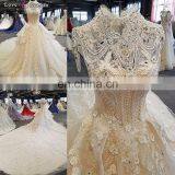 LS00323 High Neck Beaded Keyhole Back Long Train Beach Unique and Simple Dubai Wedding Gown