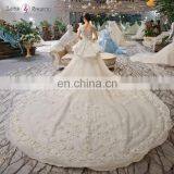 LS00383 Off-shoulder Dress Luxury Applique Lace up Long Train Women Elegant Wedding Dress
