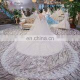 Gt907 Sleeveless Organza Elegant Cape Long Train Beaded Arab Bridal Gown Wedding Dress