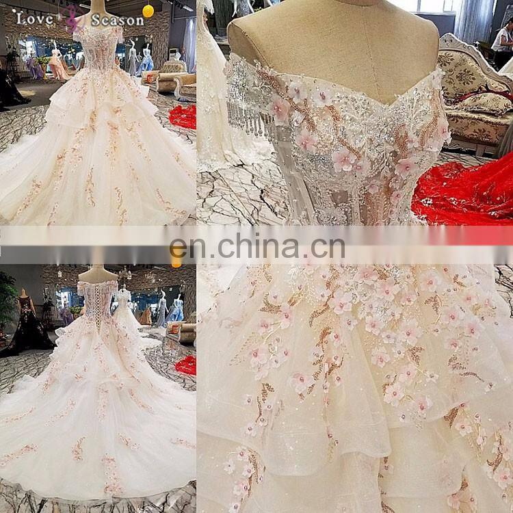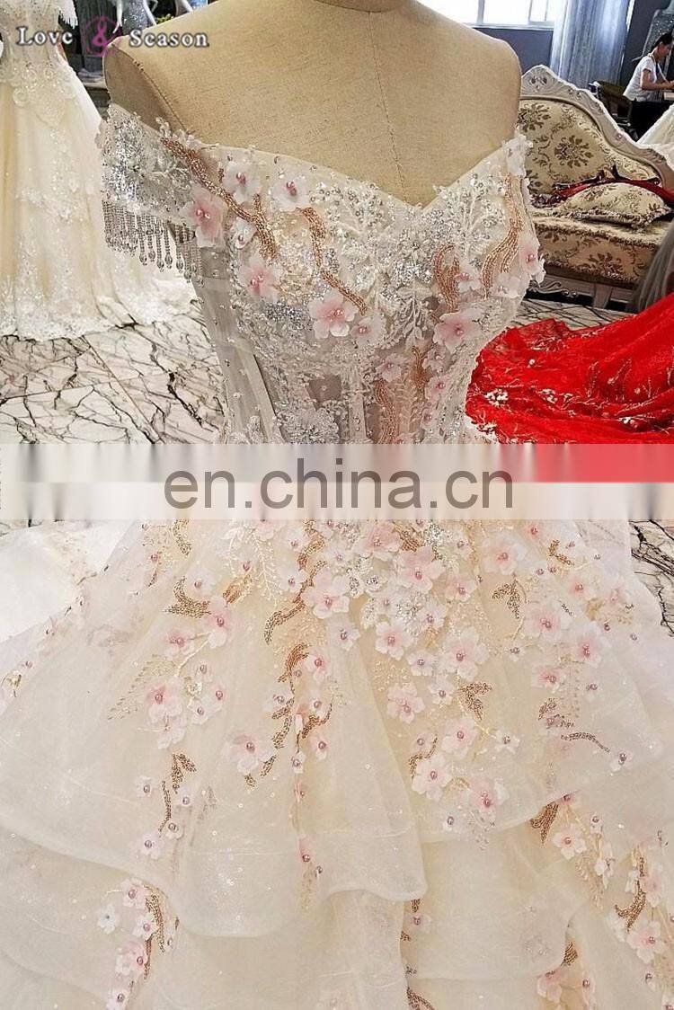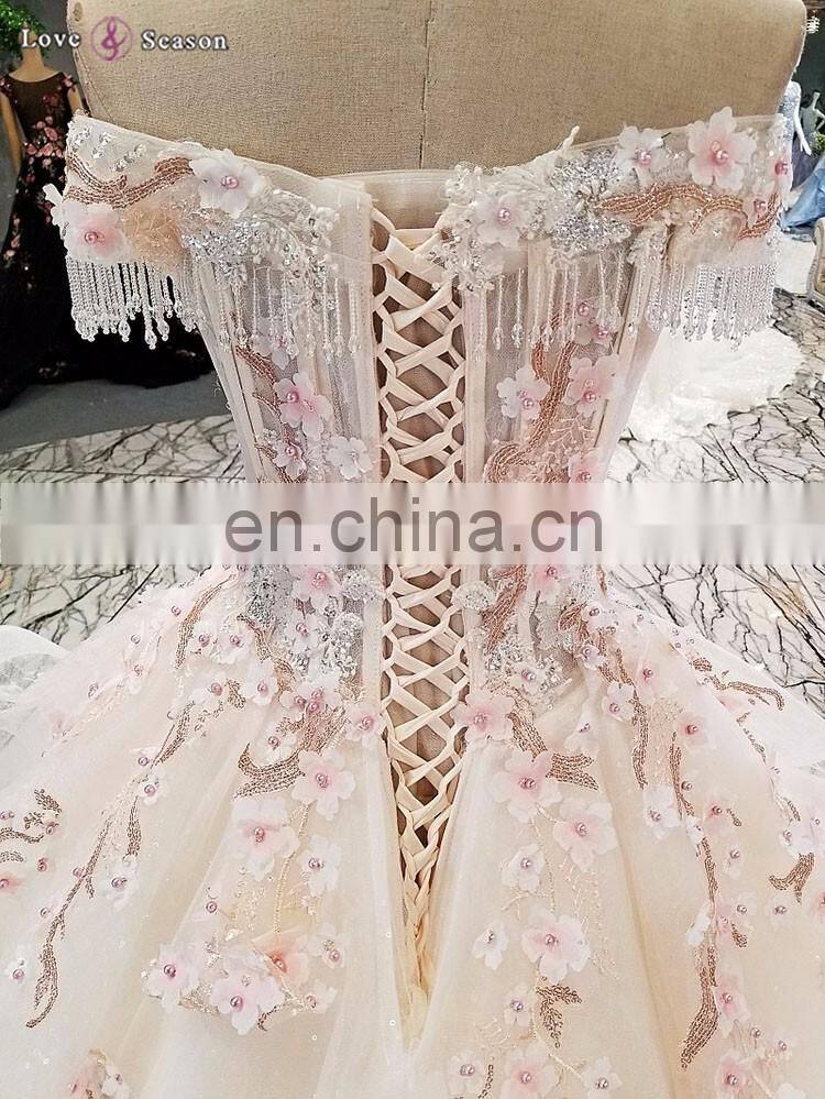 LS00293 off shoulder flower afghan wedding dress styles lace up mother of the bride beach wedding dress
