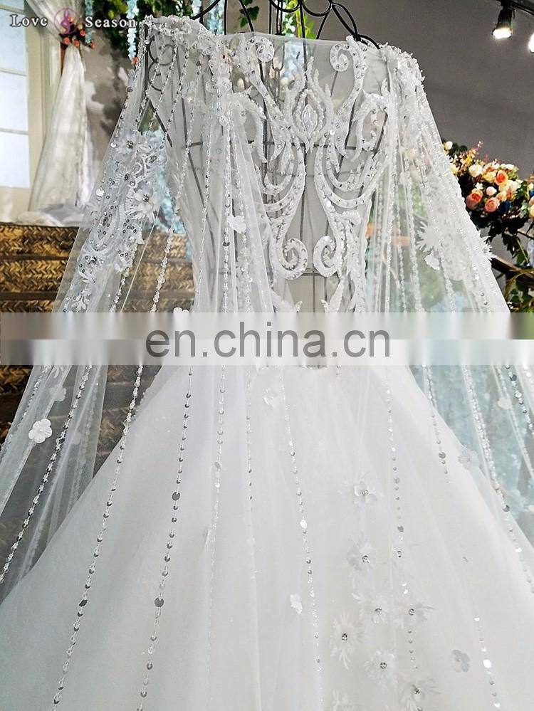 LS00218 White Arab Long Sleeve Muslim Sexy See Through Corset Saree Designs Wedding Dress