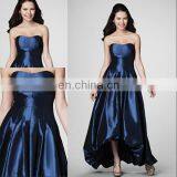 HC2224 Deep Blue Strapless Sleeveless Sweetheart Neck Gathered Band Bubble Hem Tea Length Zipper High Low Rainbow Prom Dresses