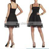 HC0007 Square Neckline Sleeveless Wide Sash Empire Waist Short Skirt With Tulle Hemline Unique Designer Cocktail Dress 2014
