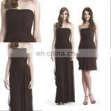 HC2289 Brown Strapless Sleeveless Gathered Chiffon A-line Asymmetrical Hem Zipper Back Cheap Removable Skirt Prom Dresses