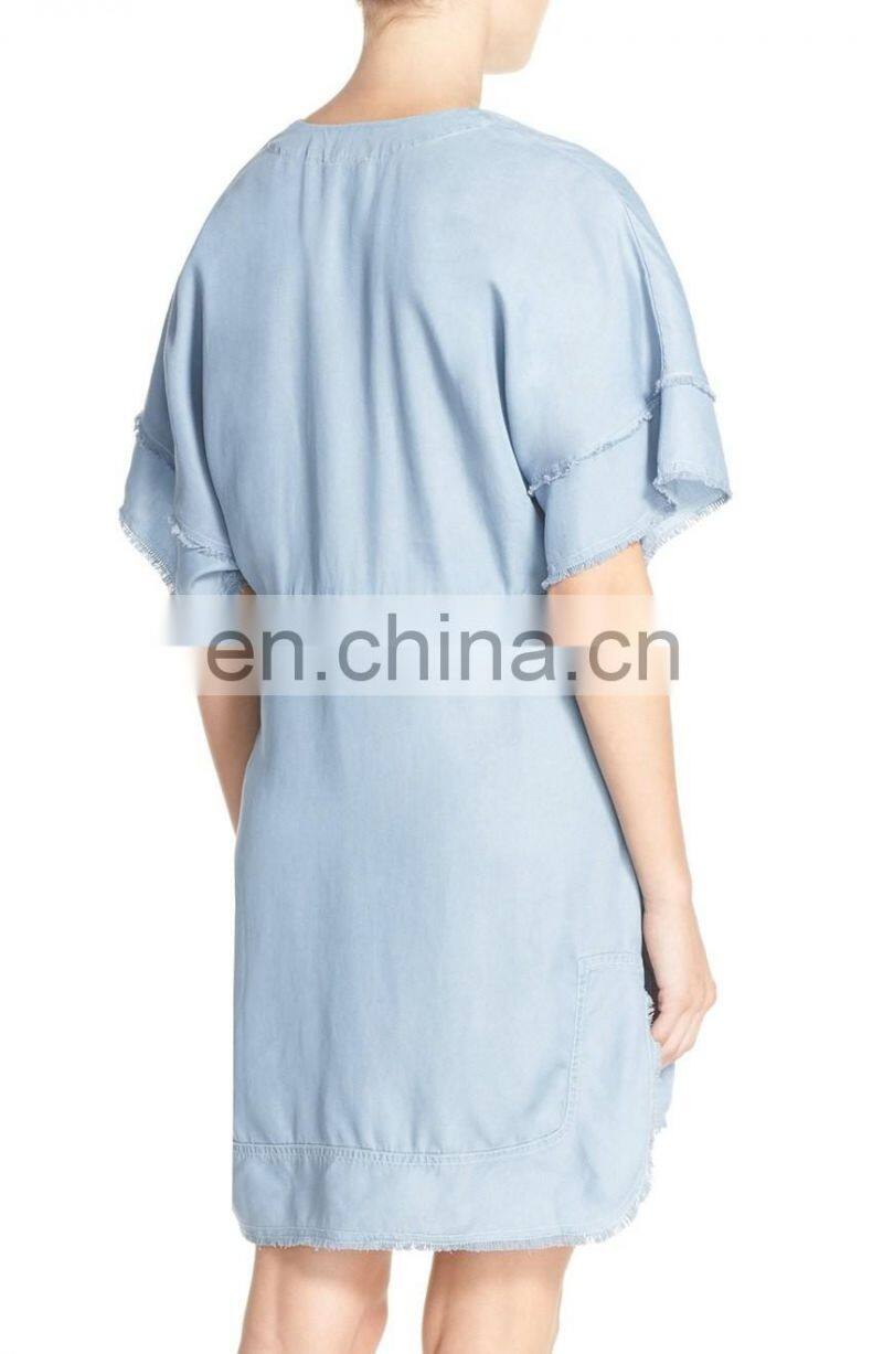 CHEFON Denim Fabric Long Sleeved Bodycon Dress