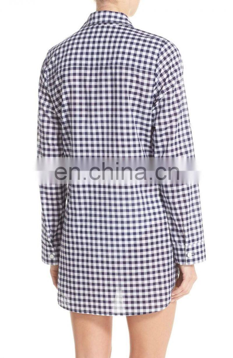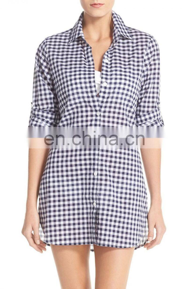 C48 Gingham Cover-Up Boyfriend Beach Shirts Women Long Sleeve