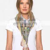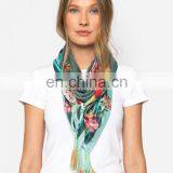 CHEFON Fashion Gorgeous Blend Indian Paisley and Geo Elements Printed Custom Braided Tassels Detail Silk Scarf