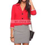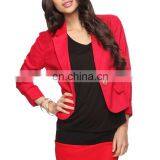 CHEFON Button Trim Women Plus Size Red Blazer CFB040