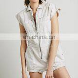 CHEFON Zip Front Rolled Shorts Buttom and Breast Pockets Women Romper,short Pants Romper