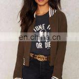 Women Zipper And Pockets Cotton Bomber Jacket