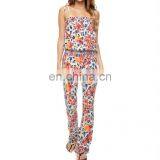 CHEFON Bold Floral Print Long Jumpsuit,skinny Tie Shoulder Straps Straight Neckline Detail Romper