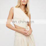 Women Adjustable Tie Back Neck With Dip Dye Tassel Ends Short Sleeve Cotton Romper Summer