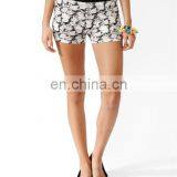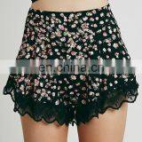 Women Floral Printed Mini Pattern Scallop Lace Trim Shorts 2016