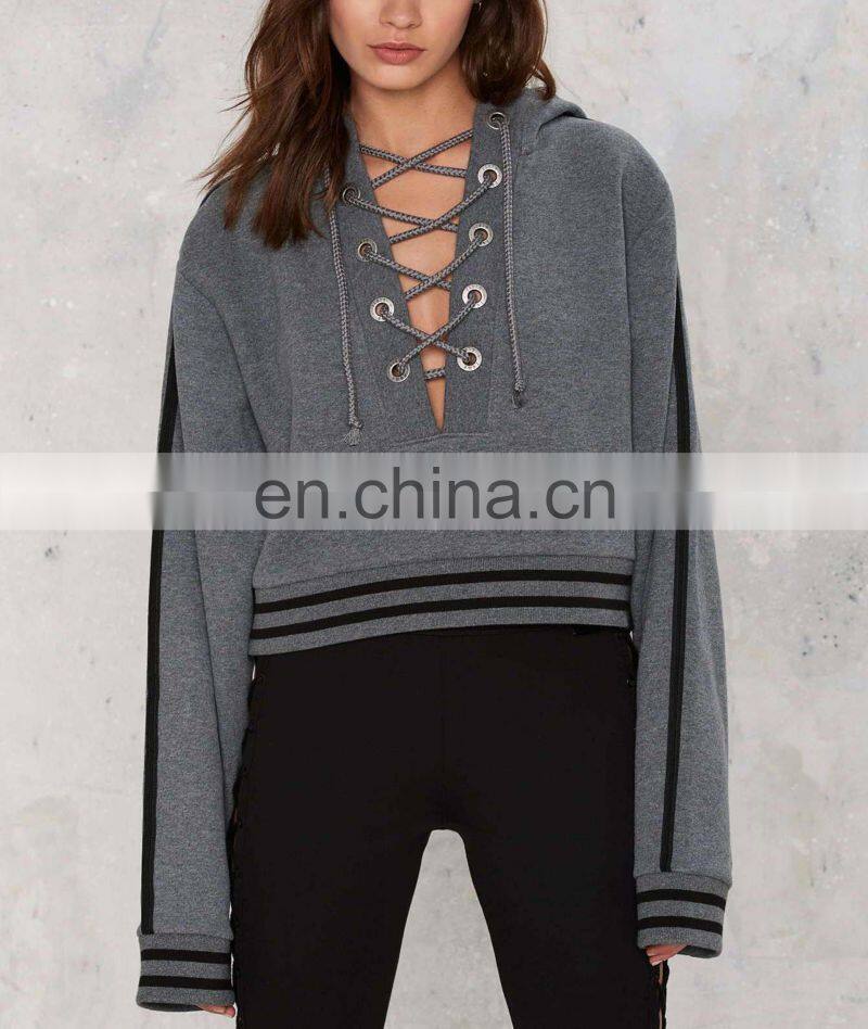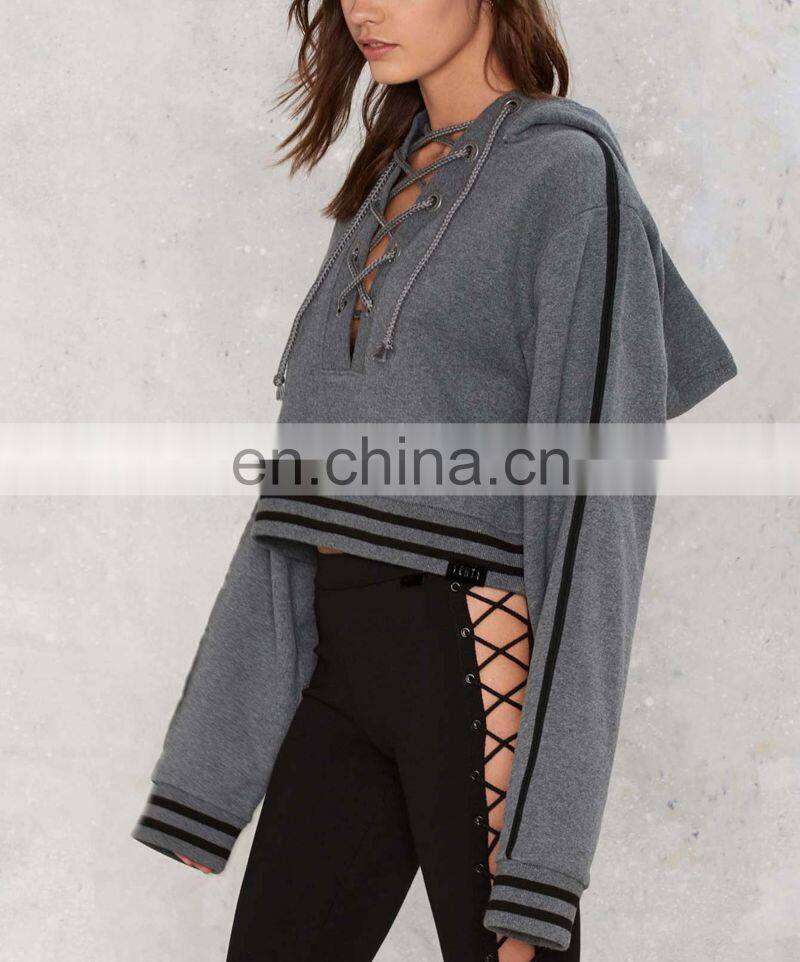 Home > Products > Women Hoodies&Sweatshirt > Oversized Adjustable Lace-up Closure Detail Cropped Hooded