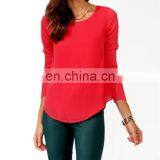 CHEFON Casual Chic Look Dip Hem Women Plus Size Blouse Chiffon Long Sleeve