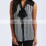 CHEFON Pussy Bow Models Striped Chiffon Blouses