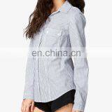 CHEFON Epaulette-Accented Vertical Stripe Button Down Blouse CB0778