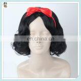 Snow White Princess Black Short Curly Cosplay Wigs With Red Bow HPC-0051