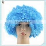Crazy Party Cheap Short Curly Football Fan Blue Afro Wigs HPC-0090