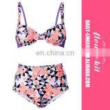 2017 High Quality Sexy Floral Print High Waist Bikini Set