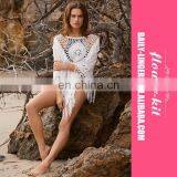 2017 Sexy Long Sleeve Crochet Tassel Cardigan Beachwear Dress