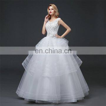 HS1601 Vintage Lace Applique Elegant White Ruched Tulle Wedding Dress 2017
