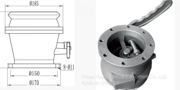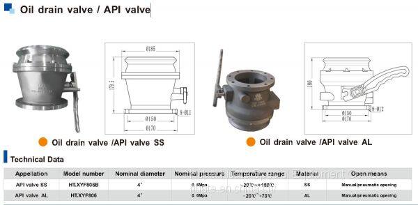 The unloading valve (also known as A P I valve) is installed at the bottom of the tank side.