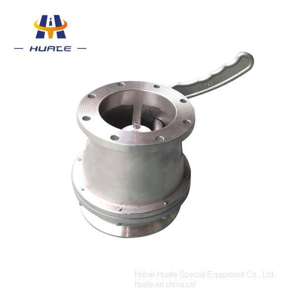 The unloading valve (also known as A P I valve) is installed at the bottom of the tank side.