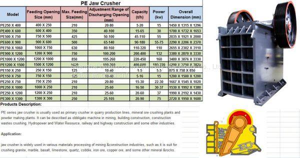 PE series jaw crusher is usually used as primary crusher in quarry production lines, mineral ore crushing plants and powder making plants. It can be described as obbligato machine in mining, building construction, construction wastes crushing, Hydropower and Water Resource, railway and highway construction and some other industries.
