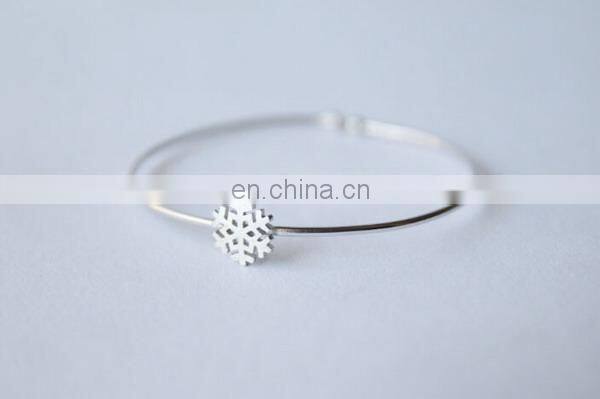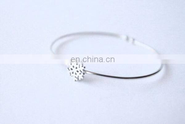 Pave Snowflake Charm Sterling Silver Fashion Bangle Open Cuff Bangle Customized Design Silver Jewellry