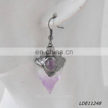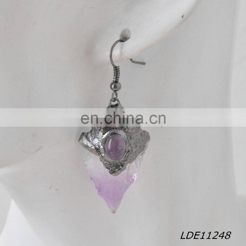 Fashionable Simple Arrowhead Crystal Earrings Purple Arrows Stone Earring