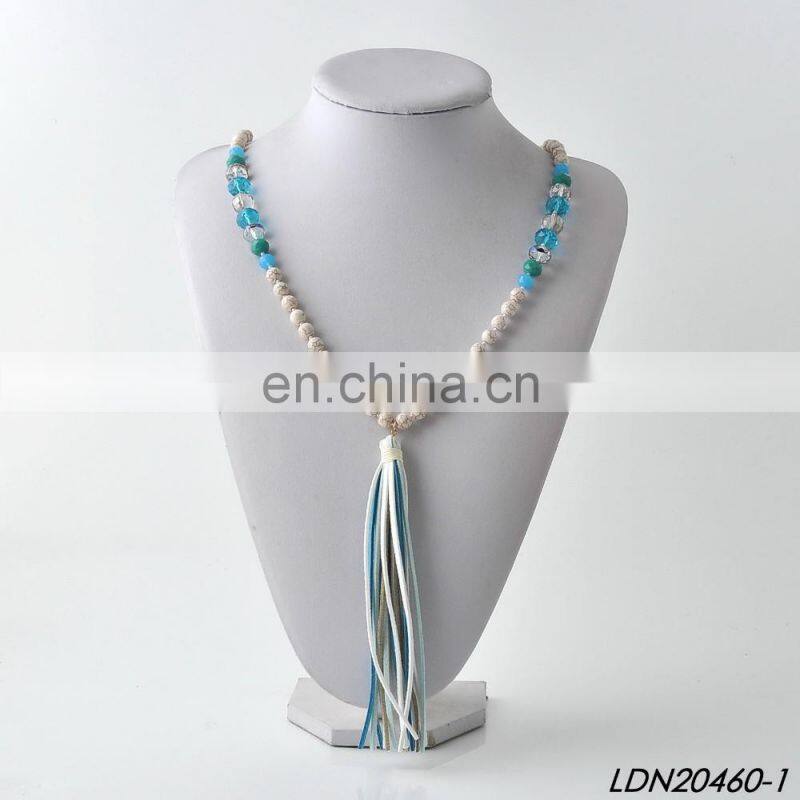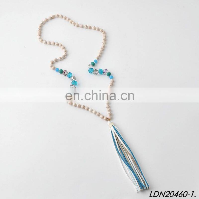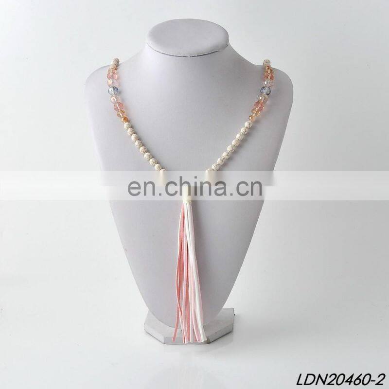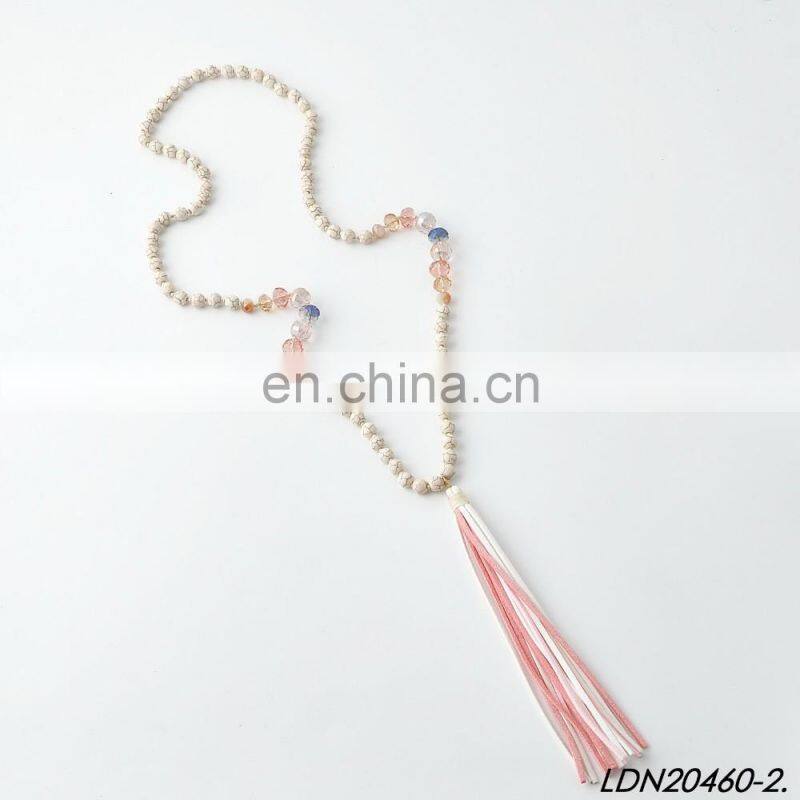 Creamy Magnesite Stone Beaded Necklace Coloful Sude Tassel Necklace