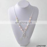 New Fashion Initial Letter Silver Pendant Necklace Pearl Glass Stone Beaded Necklace Jewelry