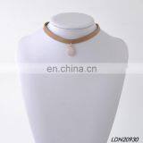 Natural Rose Quartz Stone Necklace Fashion Suede Leather Necklaces Jewelry
