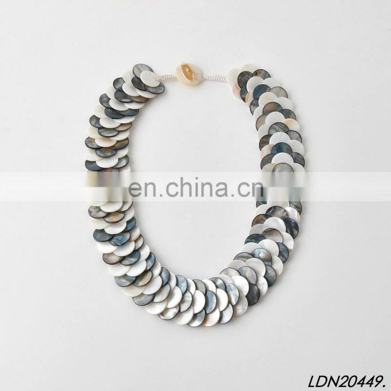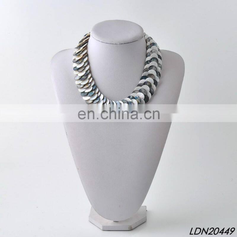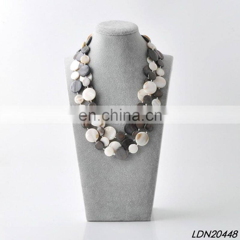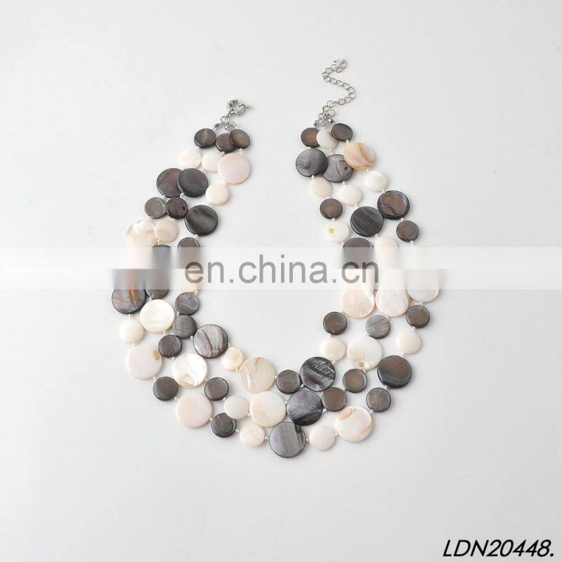 Three Stands Layering Multi Color Shell Beaded Necklace Fashion Statement Necklace